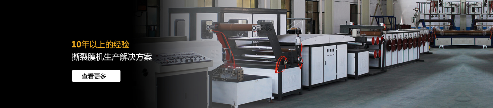 撕裂膜機以聚丙烯等為原料,經配色、擠出、切割、牽引、熱拉絲、收卷、繞球等工序,制成各種不同顏色、不同規格的軟包裝繩,生產的包裝繩具有輕薄柔軟,抗拉力,耐酸堿,色澤鮮艷等優點...
